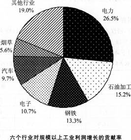 一是电力行业。实现利润460亿元,比去年同期增长1.5倍,拉动规模以上企业利润增长4.6个百分点。二是石油加工行业。去年同期亏损101亿元,今年1—2月份盈利57亿元,拉动规模以上企业利润增长2.6个百分点。三是钢铁行业。实现利润146亿元,比去年同期增长17倍,新增利润138亿元,占全部新增利润的13.3%,拉动规模以上企业利润增长2.3个百分点。四是电子行业。实现利润235亿元,比去年同期增长89%,新增利润111亿元,占全部新增利润的10.7%,拉动规模以上企业利润增长1.8个百分点。五是汽车行业。实现利润612亿元,比去年同期增长19.8%,新增利润101亿元,占全部新增利润的9.7%,拉动规模以上企业利润增长1.7个百分点。六是烟草行业,1—2月实现利润331亿元。