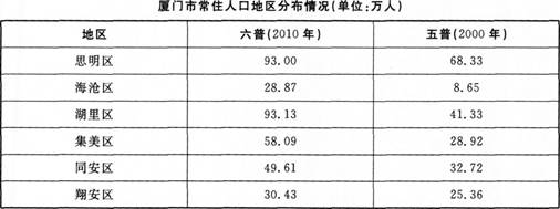 D.厦门市有三个区人口在两次普查间实现了翻番